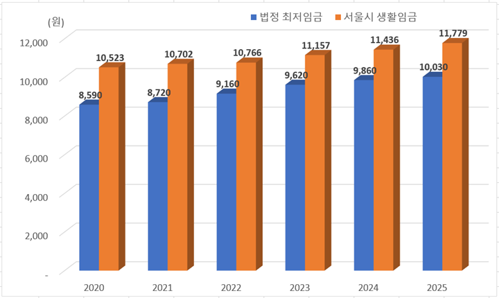 - 서울 생활임금과의 차이: 서울 생활비 수준 반영한 생활임금은 시급 11,779원으로 최저임금보다 높음 서울 외국인 지원포털