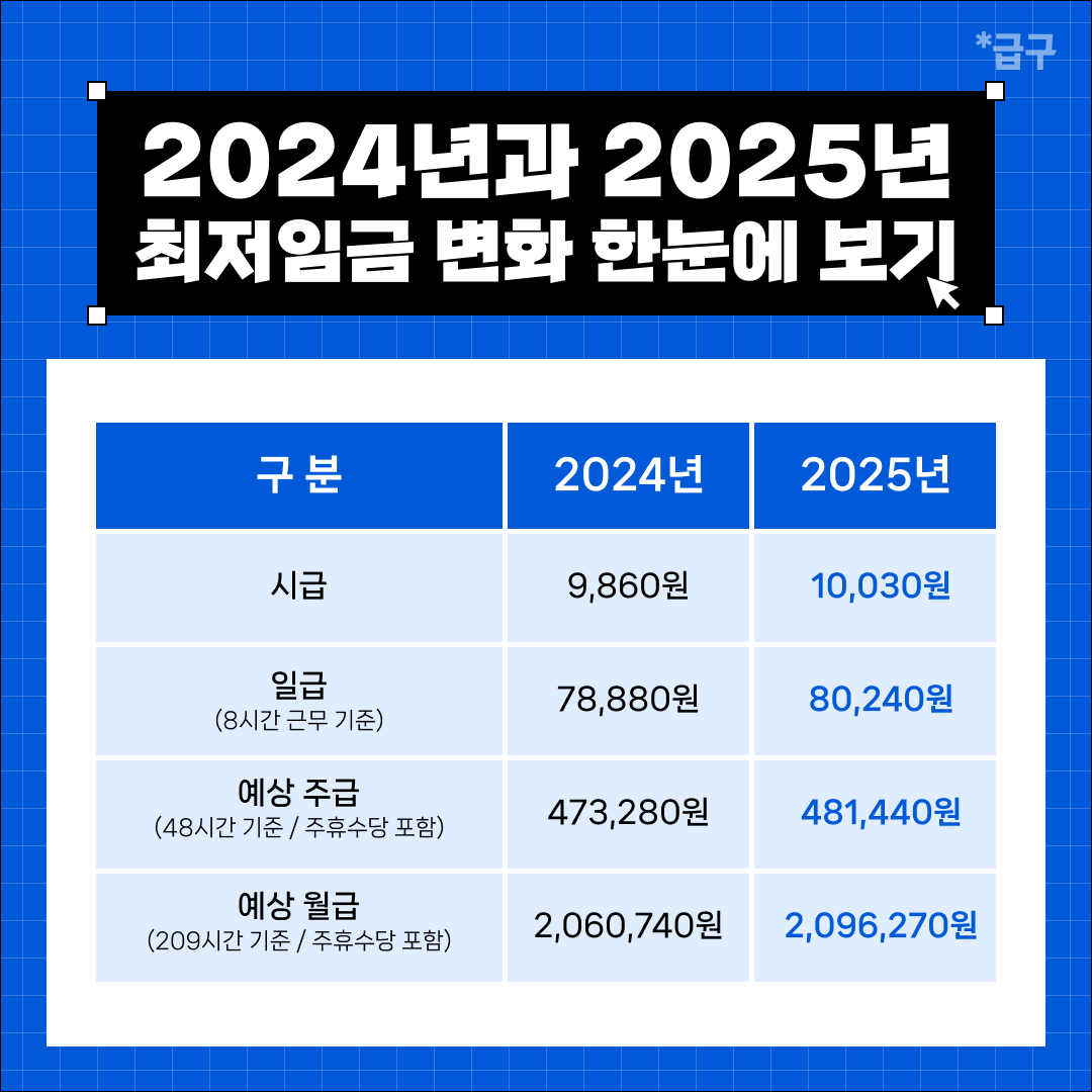 - 시급: 10,030원 (2024년 9,860원에서 1.7% 상승) 고용노동부Playroll